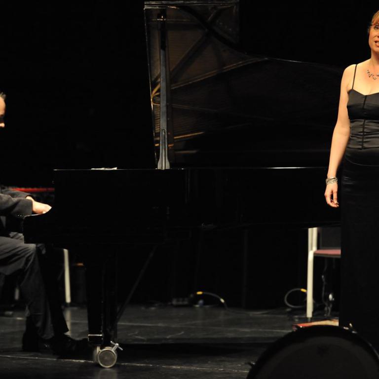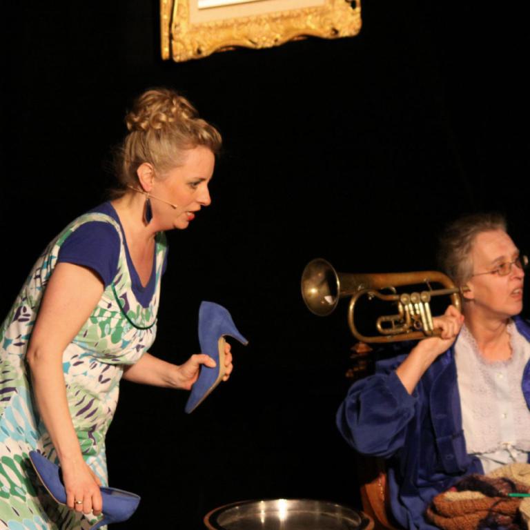 Es wurde das Stück „Hin und zurück“ von Paul Hindemith im Rahmen des Lehrerkonzertes in der Alten Mühle Bad Vilbel aufgeführt. Es handelt sich dabei um einen musikalischen Sketch, bei dem Helene (das bin ich) von ihrem Mann an ihrem Geburtstag überrascht wird. Leider bekommt sie einen Brief von ihrem Geliebten, was ihr Mann herausfindet und sie deshalb im Zorn erschießt. Allerdings bereut er es gleich und bringt sich dann selbst um. Es tritt ein Weiser auf, der meint, dass man das so nicht stehen lassen kann und dass man ja die Handlung einfach rückwärts laufen lassen kann, so dass am Schluss alles so ist, wie am Anfang. Also läuft dann alles rückwärts und alle sind wieder lebendig.