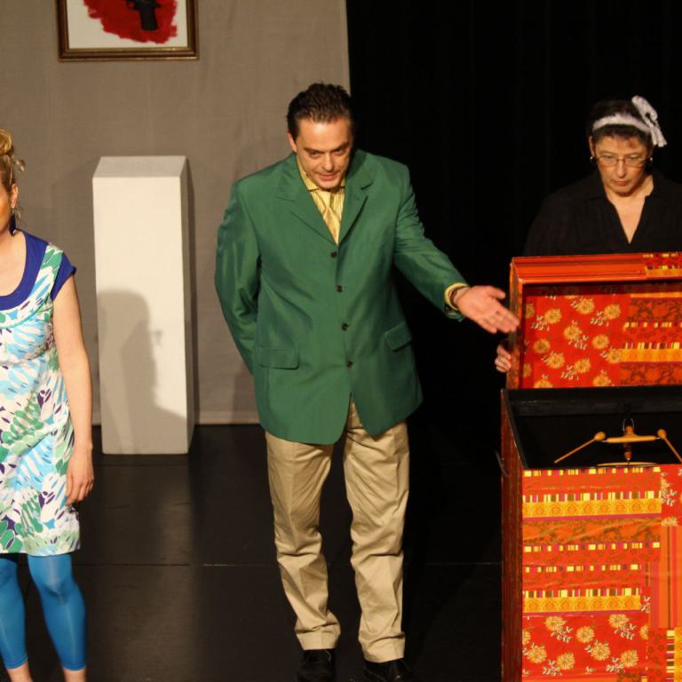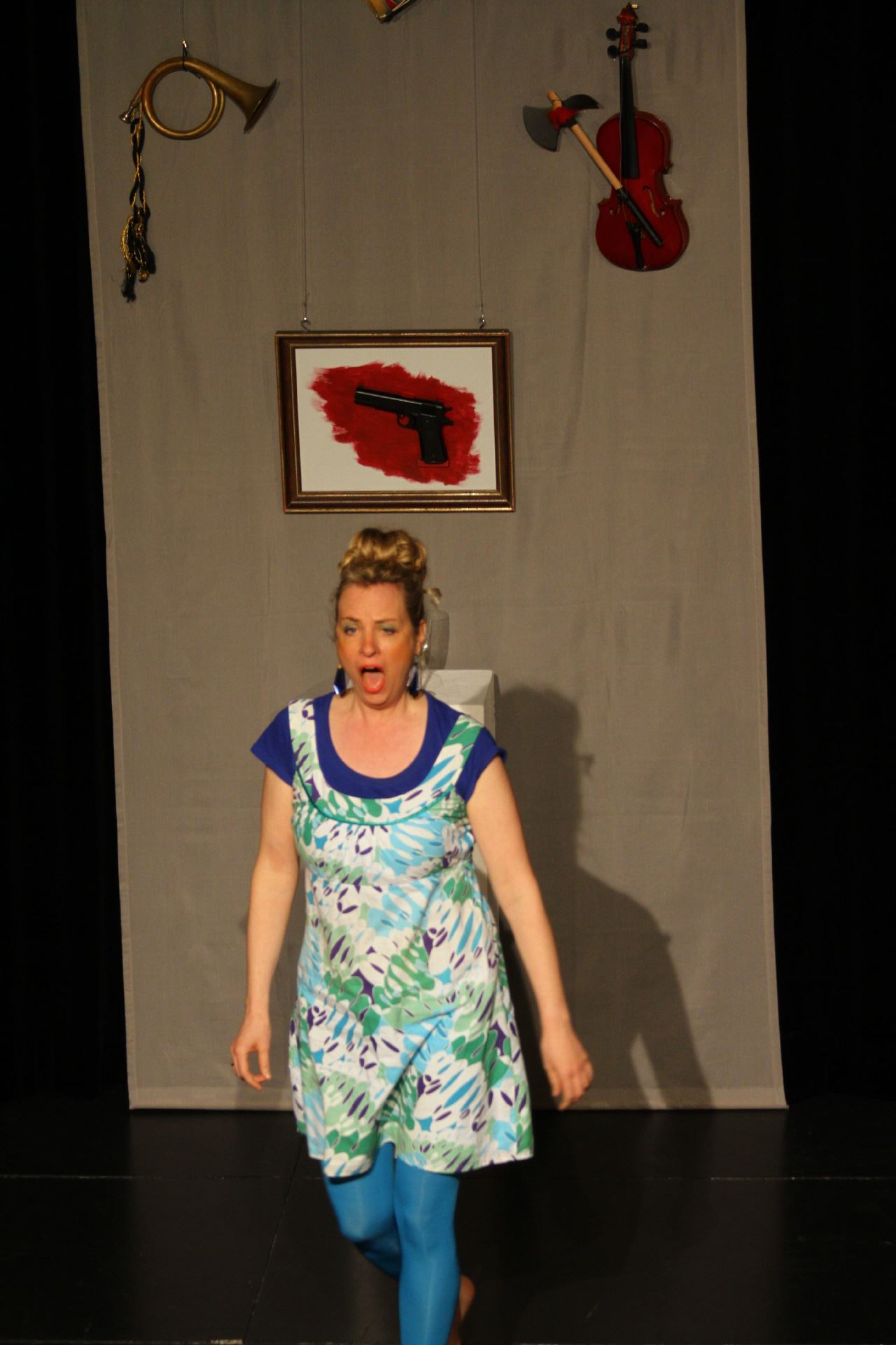 Es wurde das Stück „Hin und zurück“ von Paul Hindemith im Rahmen des Lehrerkonzertes in der Alten Mühle Bad Vilbel aufgeführt. Es handelt sich dabei um einen musikalischen Sketch, bei dem Helene (das bin ich) von ihrem Mann an ihrem Geburtstag überrascht wird. Leider bekommt sie einen Brief von ihrem Geliebten, was ihr Mann herausfindet und sie deshalb im Zorn erschießt. Allerdings bereut er es gleich und bringt sich dann selbst um. Es tritt ein Weiser auf, der meint, dass man das so nicht stehen lassen kann und dass man ja die Handlung einfach rückwärts laufen lassen kann, so dass am Schluss alles so ist, wie am Anfang. Also läuft dann alles rückwärts und alle sind wieder lebendig.