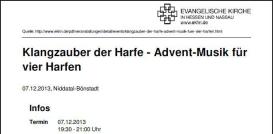 Harfenwochenende an der Musikschule Bad Vilbel mit Ausstellung, Schülerkonzert, Profikonzert, Workshops - nachzulesen auf der Homepage der Musikschule.